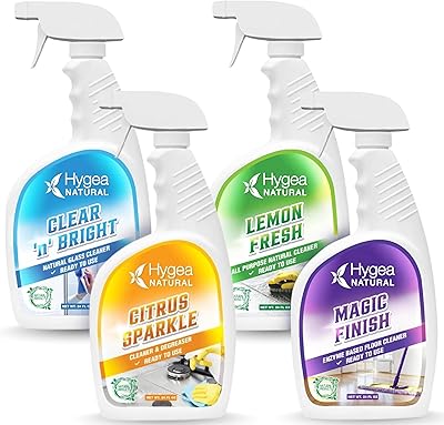 Hygea Natural Cleaning Supplies Kit All Purpose Cleaners, Citrus Degreaser, Floor and Tile Cleaner, Window, Glass and Mirror Cleaner- No Harsh Chemicals, Family safe - 4 Pack 24 oz Sprays