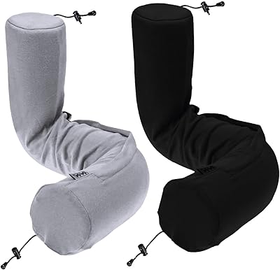 Dot&Dot Twist Memory Foam Travel Pillow for Airplanes - Travel Neck Pillow for Sleeping - Airplane Pillow for Neck Support, Chin, Lumbar and Leg - Adjustable, Bendable Neck Roll Pillow Gray Black AC
